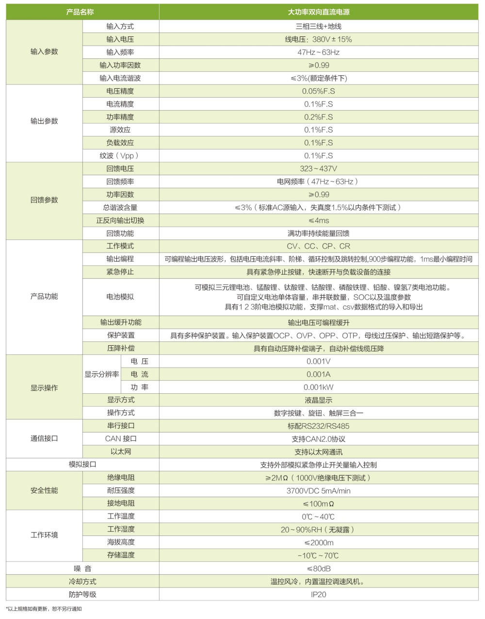 ANEVT-T系列大功率双向直流测试电源单机最大功率1.5MW,电压等级为1200V、1500V、2000V、2500V、3000V。其集成了高频PWM整流技术、双向DC变换技术以及FPGA数字控制技术。具有自适应电网回馈功能,可满足全功率段持续能量回馈电网。正反向输出无缝切换功能,可实现能量传输的无缝对接。双环路控制技术,实现超高控制精度,以及对客户设备应用快速响应,保证设备测试稳定性和测试数据的准确性。超宽范围的电压电流输出能力,丰富的输出编程测试功能,更好满足客户不同产品测试的需求。设备还具有多重保护编程功能,能够更好的保护客户设备在测试过程中的安全性。