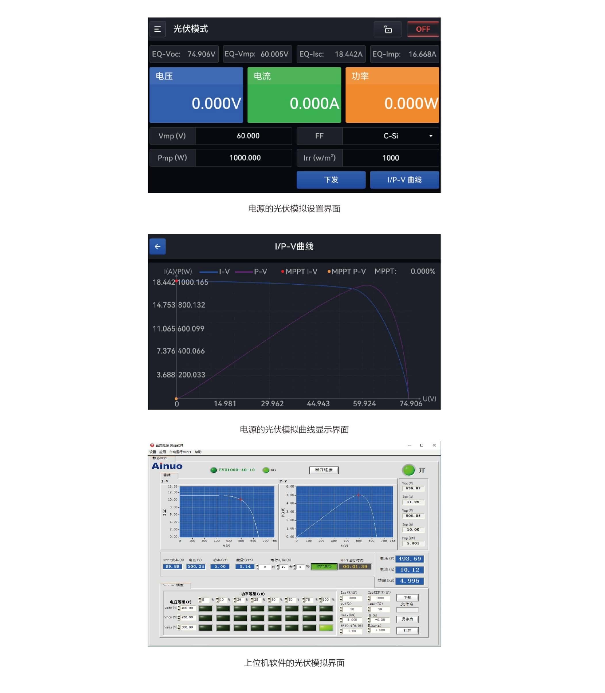 ■ 标配太阳能矩阵仿真软件,图形化操作界面,实时显示光伏逆变器的MPPT状态;