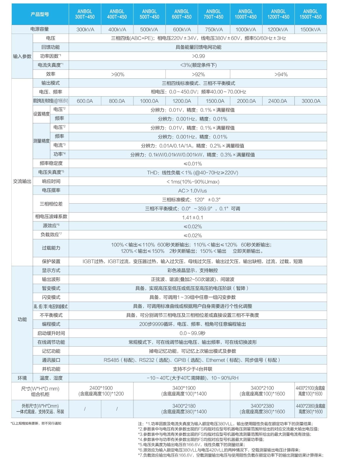 ANBGL系列可回馈交流源载一体机,兼备电网模拟源和交流负载模拟两种功能,满足新能源行业的各种测试需求。